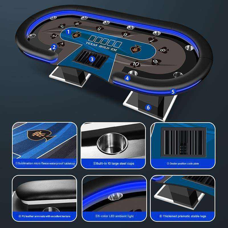 The Inean Play Luxury Led Poker Table Texas Hold Em 10-Player Casino Blackjack Modern Baccarat Armrest Baccarat Holders Customized is designed for various poker gaming scenarios: